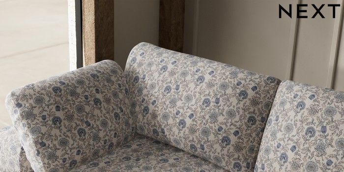 7.3.1 Buy N Premium The Snuggle Grand Medium Sofa Chaise - Left Hand Relaxed Linen Look Print Woodblock Floral Blue Large Square Angle - Dark from the Next UK online shop Click here to use our accessible website