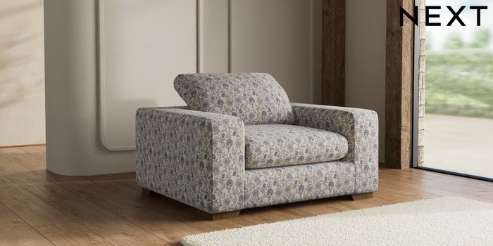 7.3.1 Buy N Premium The Snuggle Grand Snuggle Relaxed Linen Look Print Woodblock Floral Blue Large Square Angle - Mid from the Next UK online shop