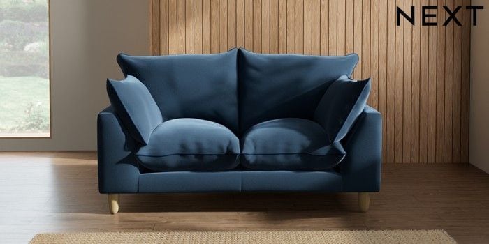 7.3.1 Buy Noa Deep Relaxed Sit 2 Seater Small Sofa Plush Velvet with Contrast Airforce Blue with Navy Blue High Leg - Light from the Next UK online shop Click here to use our accessible website