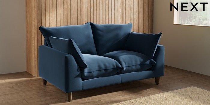 7.3.1 Buy Noa Deep Relaxed Sit 2 Seater Small Sofa Plush Velvet with Contrast Airforce Blue with Navy Blue High Leg - Mid from the Next UK online shop Click here to use our accessible website