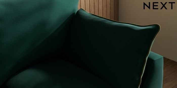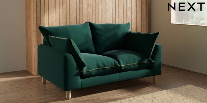 7.3.1 Buy Noa Deep Relaxed Sit 2 Seater Small Sofa Plush Velvet with Contrast Bottle Grn with Mid Olive Grn High Leg - Light from the Next UK online shop Click here to use our accessible website