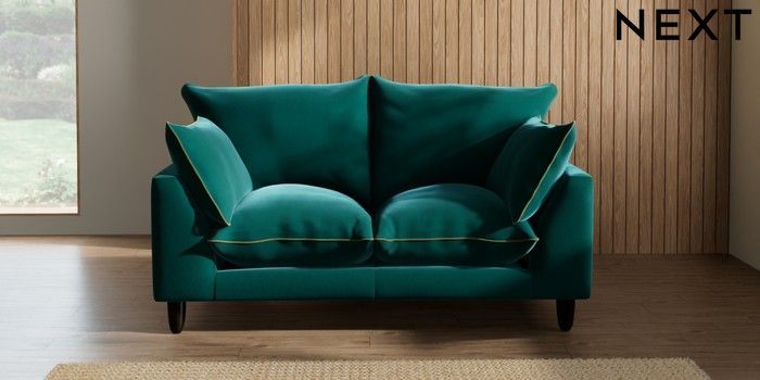 7.3.1 Buy Noa Deep Relaxed Sit 2 Seater Small Sofa Plush Velvet with Contrast Juniper Grn with Mid Olive Grn High Leg - Dark from the Next UK online shop Click here to use our accessible website
