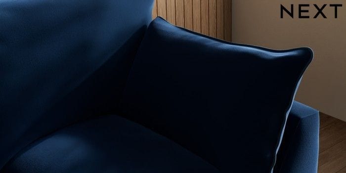 7.3.1 Buy Noa Deep Relaxed Sit 2 Seater Small Sofa Plush Velvet with Contrast Navy Blue with Airforce Blue High Leg - Light from the Next UK online shop Click here to use our accessible website