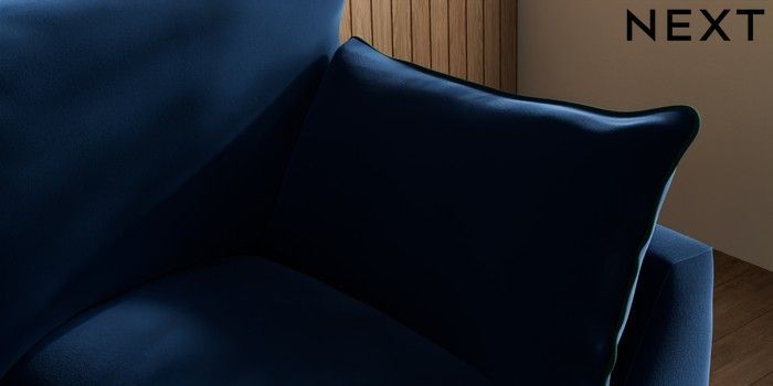 7.3.1 Buy Noa Deep Relaxed Sit 2 Seater Small Sofa Plush Velvet with Contrast Navy Blue with Bottle Green High Leg - Dark from the Next UK online shop Click here to use our accessible website