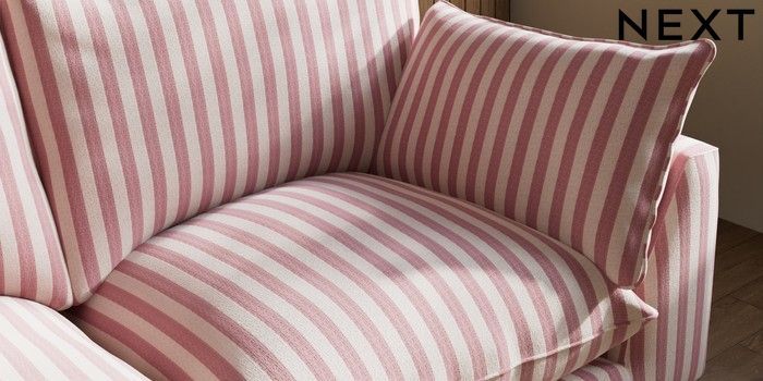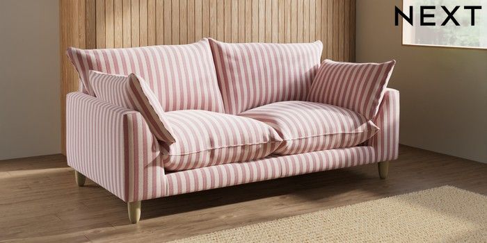 7.3.1 Buy Noa Deep Relaxed Sit 3 Seater Small Sofa Bold Chenille Stripe Dark Pink High Leg - Light from the Next UK online shop