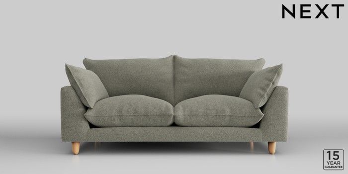 6.12.1 Buy Noa Deep Relaxed Sit 3 Seater Small Sofa Chunky Marl Light Olive Green High Leg - Light from the Next UK online shop Click here to use our accessible website