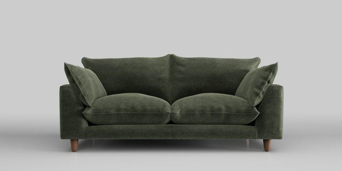 7.0.3 Buy Noa Deep Relaxed Sit 3 Seater Small Sofa Luxe Chenille Mid Green High Leg - Mid from the Next UK online shop Click here to use our accessible website