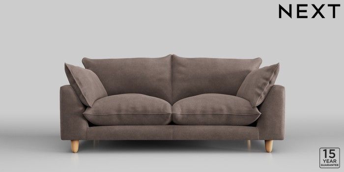 6.12.1 Buy Noa Deep Relaxed Sit 3 Seater Small Sofa Luxe Chenille Mink Brown High Leg - Light from the Next UK online shop Click here to use our accessible website