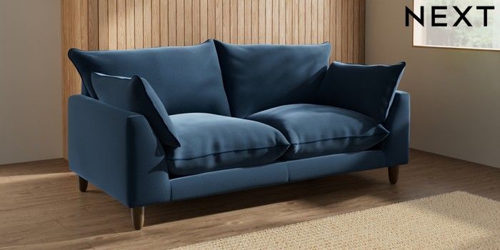 7.3.1 Buy Noa Deep Relaxed Sit 3 Seater Small Sofa Plush Velvet with Contrast Airforce Blue with Navy Blue High Leg - Mid from the Next UK online shop Click here to use our accessible website