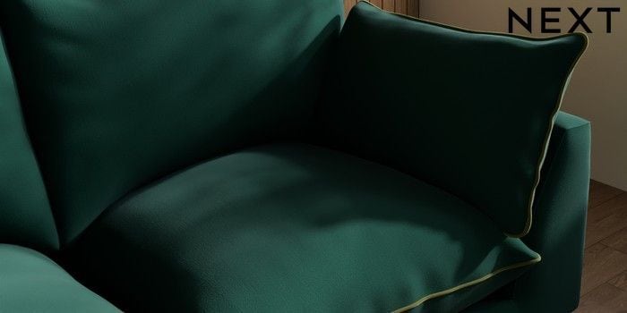7.3.1 Buy Noa Deep Relaxed Sit 3 Seater Small Sofa Plush Velvet with Contrast Bottle Grn with Mid Olive Grn High Leg - Light from the Next UK online shop Click here to use our accessible website