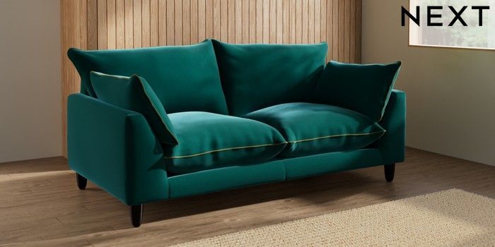 7.3.1 Buy Noa Deep Relaxed Sit 3 Seater Small Sofa Plush Velvet with Contrast Juniper Grn with Mid Olive Grn High Leg - Dark from the Next UK online shop Click here to use our accessible website
