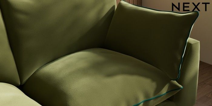 7.3.1 Buy Noa Deep Relaxed Sit 3 Seater Small Sofa Plush Velvet with Contrast Mid Olive Grn with Juniper Grn High Leg - Mid from the Next UK online shop Click here to use our accessible website
