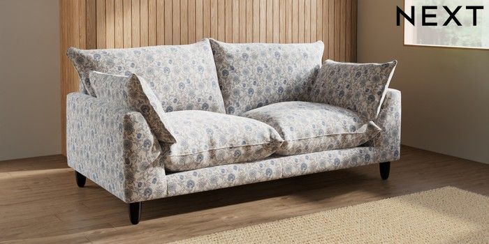 7.3.1 Buy Noa Deep Relaxed Sit 3 Seater Small Sofa Relaxed Linen Look Print Woodblock Floral Blue High Leg - Dark from the Next UK online shop Click here to use our accessible website