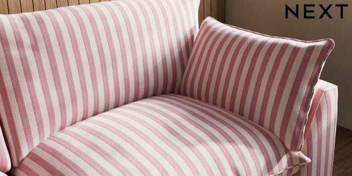 7.3.1 Buy Noa Deep Relaxed Sit 3 Seater Sofa Bold Chenille Stripe Dark Pink High Leg - Dark from the Next UK online shop