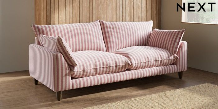 7.3.1 Buy Noa Deep Relaxed Sit 3 Seater Sofa Bold Chenille Stripe Dark Pink High Leg - Mid from the Next UK online shop