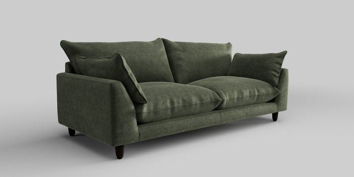 6.12.1 Buy Noa Deep Relaxed Sit 3 Seater Sofa Luxe Chenille Mid Green High Leg - Dark from the Next UK online shop Click here to use our accessible website