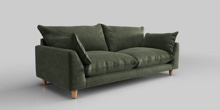 6.12.1 Buy Noa Deep Relaxed Sit 3 Seater Sofa Luxe Chenille Mid Green High Leg - Light from the Next UK online shop Click here to use our accessible website