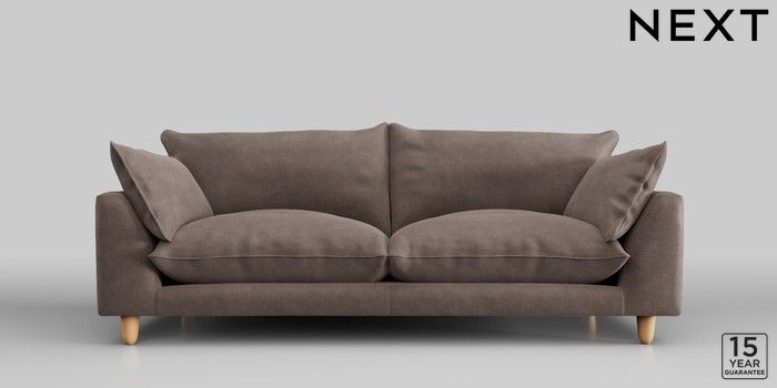6.12.1 Buy Noa Deep Relaxed Sit 3 Seater Sofa Luxe Chenille Mink Brown High Leg - Light from the Next UK online shop Click here to use our accessible website