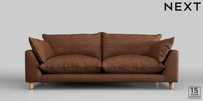 6.12.1 Buy Noa Deep Relaxed Sit 3 Seater Sofa Monza Faux Leather Easy Clean Chestnut Brown High Leg - Light from the Next UK online shop Click here to use our accessible website