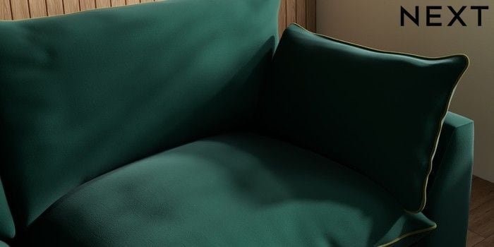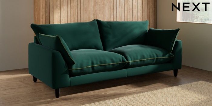 7.3.1 Buy Noa Deep Relaxed Sit 3 Seater Sofa Plush Velvet with Contrast Bottle Grn with Mid Olive Grn High Leg - Dark from the Next UK online shop Click here to use our accessible website