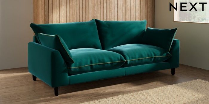 7.3.1 Buy Noa Deep Relaxed Sit 3 Seater Sofa Plush Velvet with Contrast Juniper Grn with Mid Olive Grn High Leg - Dark from the Next UK online shop Click here to use our accessible website