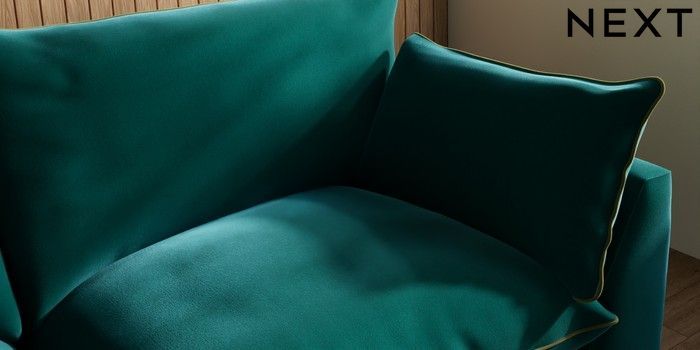 7.3.1 Buy Noa Deep Relaxed Sit 3 Seater Sofa Plush Velvet with Contrast Juniper Grn with Mid Olive Grn High Leg - Mid from the Next UK online shop Click here to use our accessible website
