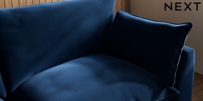 7.3.1 Buy Noa Deep Relaxed Sit 3 Seater Sofa Plush Velvet with Contrast Navy Blue with Airforce Blue High Leg - Dark from the Next UK online shop Click here to use our accessible website