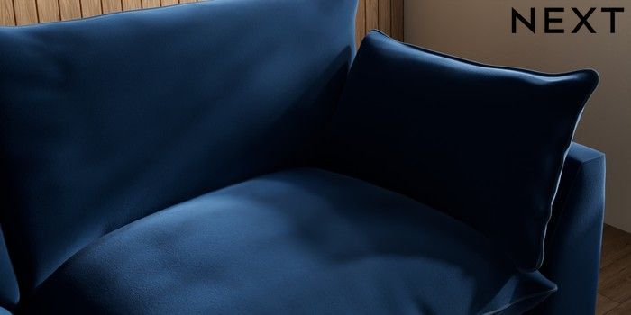 7.3.1 Buy Noa Deep Relaxed Sit 3 Seater Sofa Plush Velvet with Contrast Navy Blue with Airforce Blue High Leg - Mid from the Next UK online shop Click here to use our accessible website