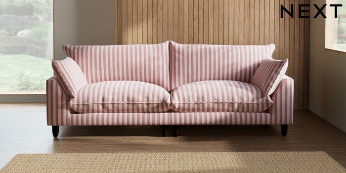7.2.6 Buy Noa Deep Relaxed Sit 4 Seater Sofa Bold Chenille Stripe Dark Pink High Leg - Dark from the Next UK online shop Click here to use our accessible website