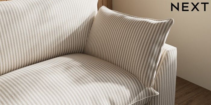 7.3.1 Buy Noa Deep Relaxed Sit 4 Seater Sofa Chenille Stripe Natural High Leg - Light from the Next UK online shop Click here to use our accessible website