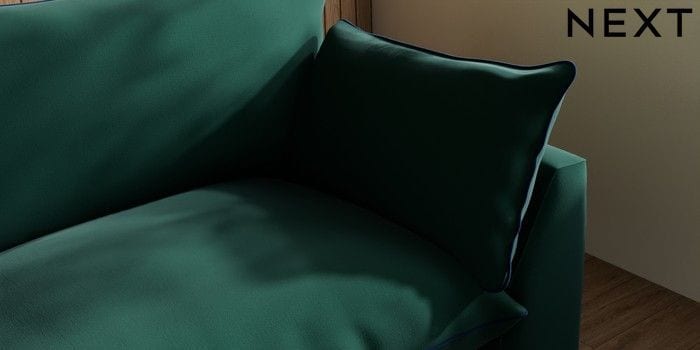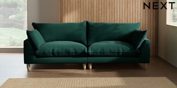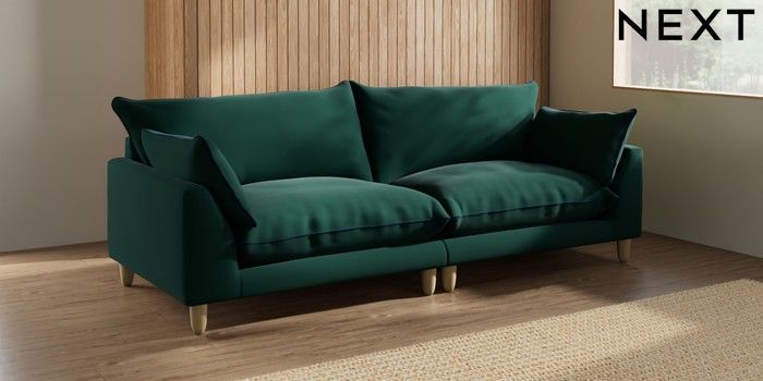 7.3.1 Buy Noa Deep Relaxed Sit 4 Seater Sofa Plush Velvet with Contrast Bottle Green with Navy Blue High Leg - Light from the Next UK online shop Click here to use our accessible website