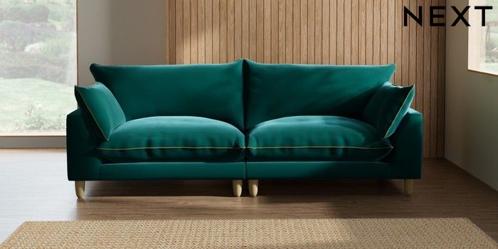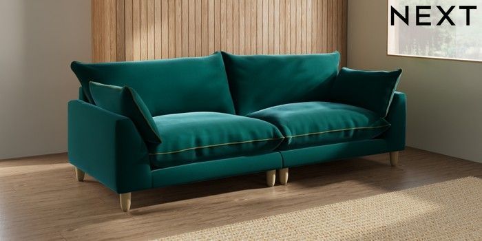 7.3.1 Buy Noa Deep Relaxed Sit 4 Seater Sofa Plush Velvet with Contrast Juniper Grn with Mid Olive Grn High Leg - Light from the Next UK online shop Click here to use our accessible website