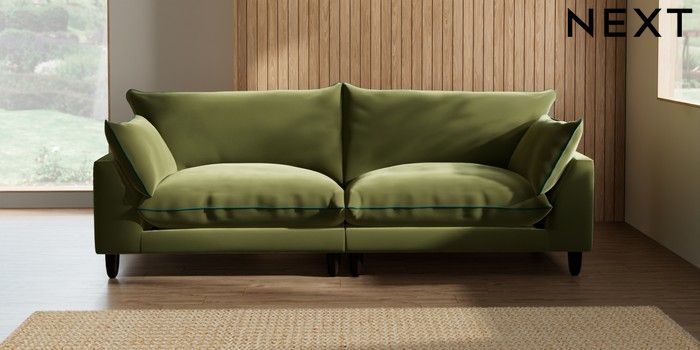 7.3.1 Buy Noa Deep Relaxed Sit 4 Seater Sofa Plush Velvet with Contrast Mid Olive Grn with Juniper Grn High Leg - Dark from the Next UK online shop Click here to use our accessible website