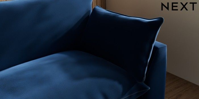 7.3.1 Buy Noa Deep Relaxed Sit 4 Seater Sofa Plush Velvet with Contrast Navy Blue with Airforce Blue High Leg - Dark from the Next UK online shop Click here to use our accessible website