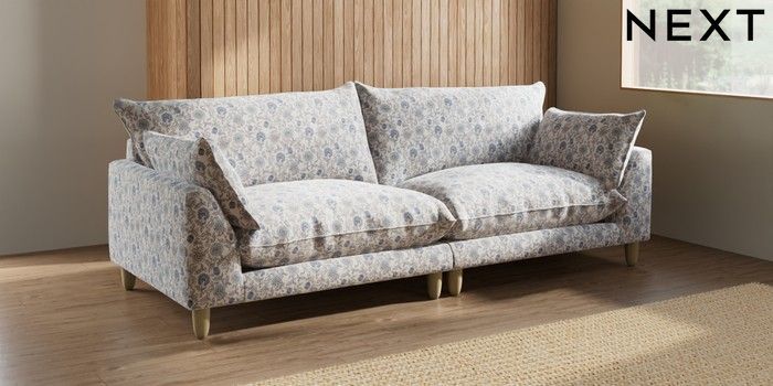 7.3.1 Buy Noa Deep Relaxed Sit 4 Seater Sofa Relaxed Linen Look Print Woodblock Floral Blue High Leg - Light from the Next UK online shop Click here to use our accessible website