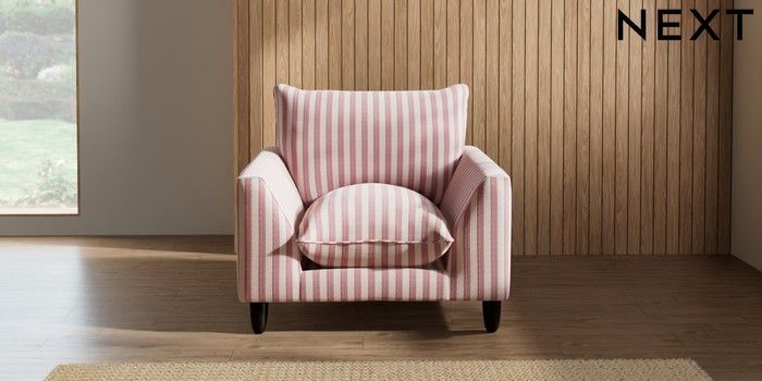 7.2.6 Buy Noa Deep Relaxed Sit Armchair Bold Chenille Stripe Dark Pink High Leg - Dark from the Next UK online shop Click here to use our accessible website
