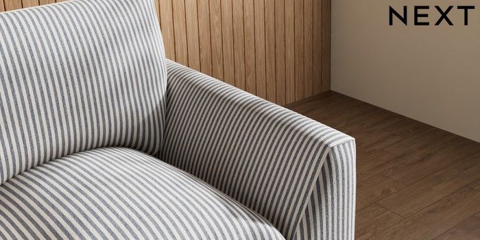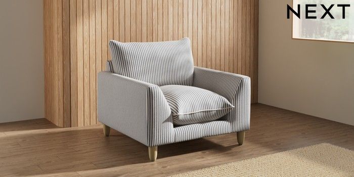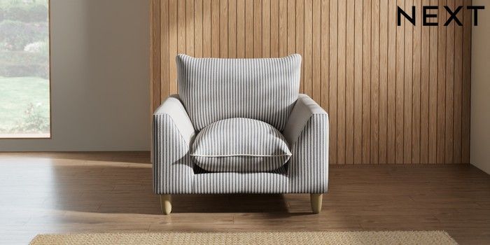 7.3.1 Buy Noa Deep Relaxed Sit Armchair Chenille Stripe Slate Blue High Leg - Light from the Next UK online shop Click here to use our accessible website