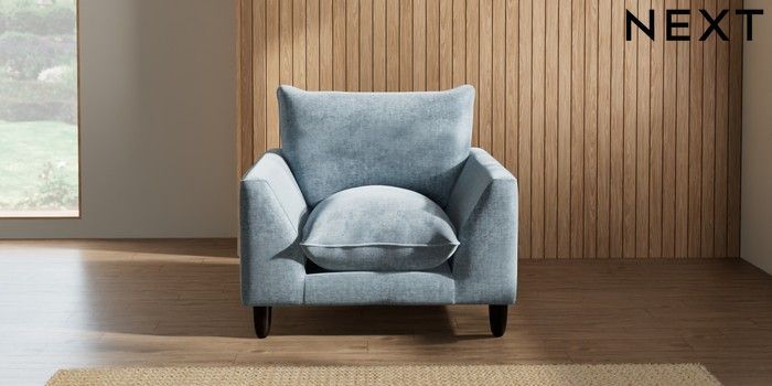 7.2.6 Buy Noa Deep Relaxed Sit Armchair Plush Chenille Light Blue High Leg - Dark from the Next UK online shop Click here to use our accessible website