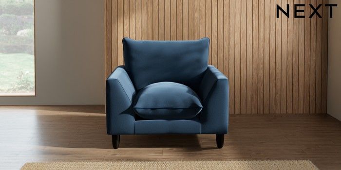 7.3.1 Buy Noa Deep Relaxed Sit Armchair Plush Velvet with Contrast Airforce Blue with Navy Blue High Leg - Dark from the Next UK online shop Click here to use our accessible website