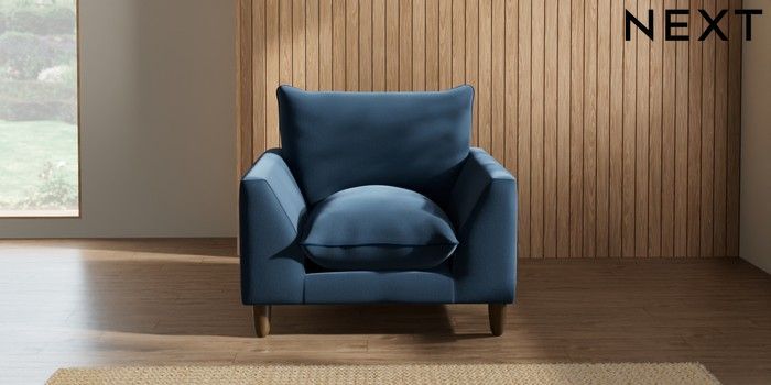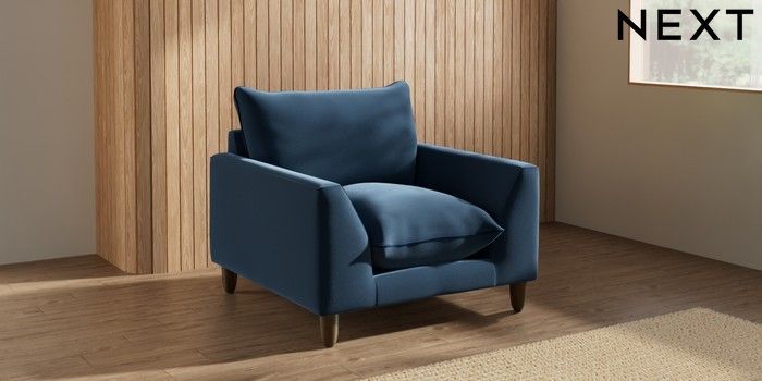 7.3.1 Buy Noa Deep Relaxed Sit Armchair Plush Velvet with Contrast Airforce Blue with Navy Blue High Leg - Mid from the Next UK online shop Click here to use our accessible website