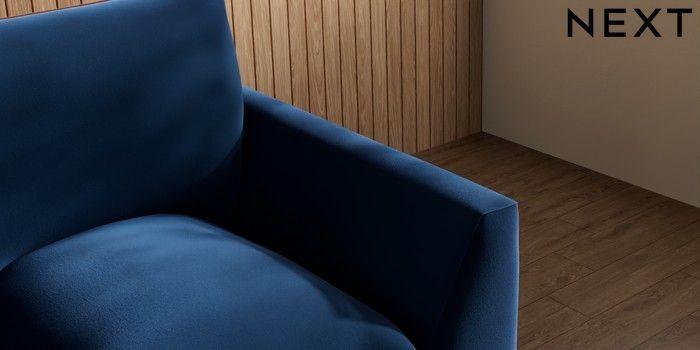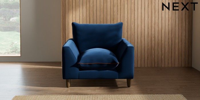 7.3.1 Buy Noa Deep Relaxed Sit Armchair Plush Velvet with Contrast Navy Blue with Ginger Orange High Leg - Mid from the Next UK online shop Click here to use our accessible website