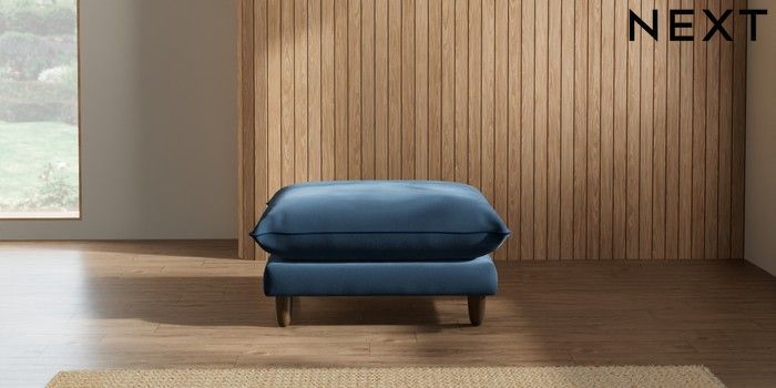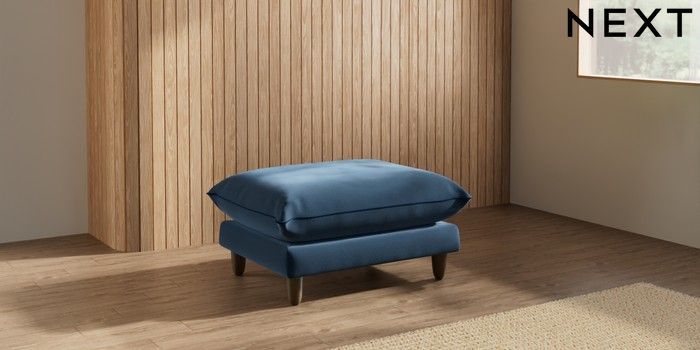 7.3.1 Buy Noa Deep Relaxed Sit Footstool Plush Velvet with Contrast Airforce Blue with Navy Blue High Leg - Mid from the Next UK online shop Click here to use our accessible website