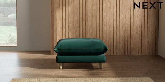 7.3.1 Buy Noa Deep Relaxed Sit Footstool Plush Velvet with Contrast Bottle Grn with Mid Olive Grn High Leg - Light from the Next UK online shop Click here to use our accessible website