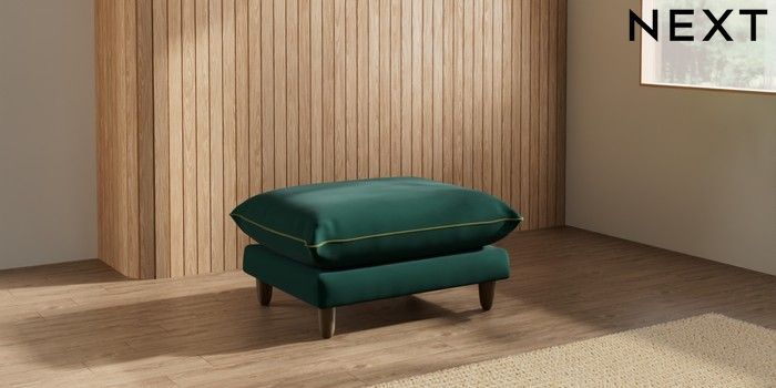 7.3.1 Buy Noa Deep Relaxed Sit Footstool Plush Velvet with Contrast Bottle Grn with Mid Olive Grn High Leg - Mid from the Next UK online shop Click here to use our accessible website