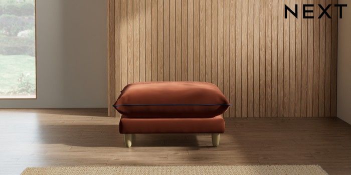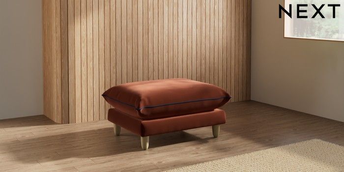 7.3.1 Buy Noa Deep Relaxed Sit Footstool Plush Velvet with Contrast Ginger Orange with Navy Blue High Leg - Light from the Next UK online shop Click here to use our accessible website