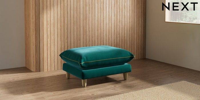 7.3.1 Buy Noa Deep Relaxed Sit Footstool Plush Velvet with Contrast Juniper Grn with Mid Olive Grn High Leg - Light from the Next UK online shop Click here to use our accessible website