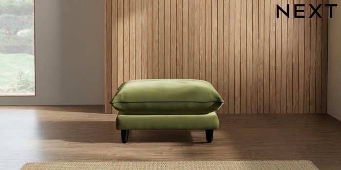 7.3.1 Buy Noa Deep Relaxed Sit Footstool Plush Velvet with Contrast Mid Olive Grn with Bottle Grn High Leg - Dark from the Next UK online shop Click here to use our accessible website