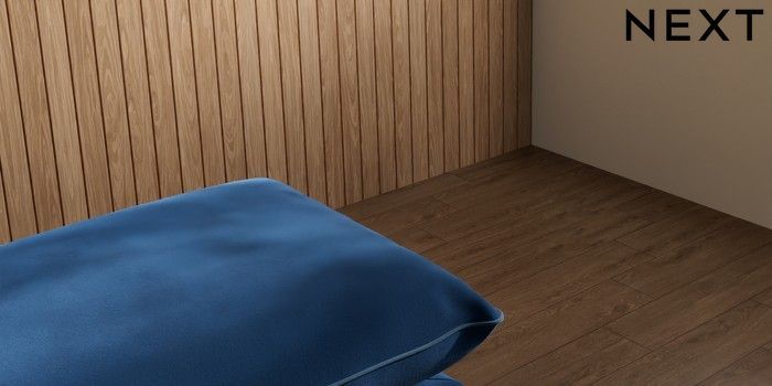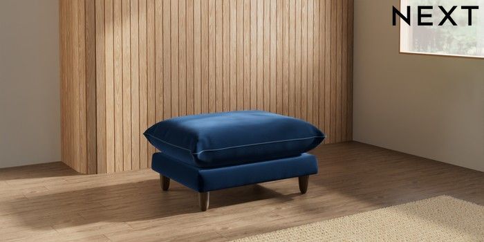 7.3.1 Buy Noa Deep Relaxed Sit Footstool Plush Velvet with Contrast Navy Blue with Airforce Blue High Leg - Mid from the Next UK online shop Click here to use our accessible website