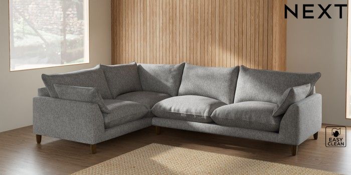 7.2.6 Buy Noa Deep Relaxed Sit Large Corner Sofa - Left Hand Chunky Boucle Easy Clean Light Grey High Leg - Mid from the Next UK online shop Click here to use our accessible website