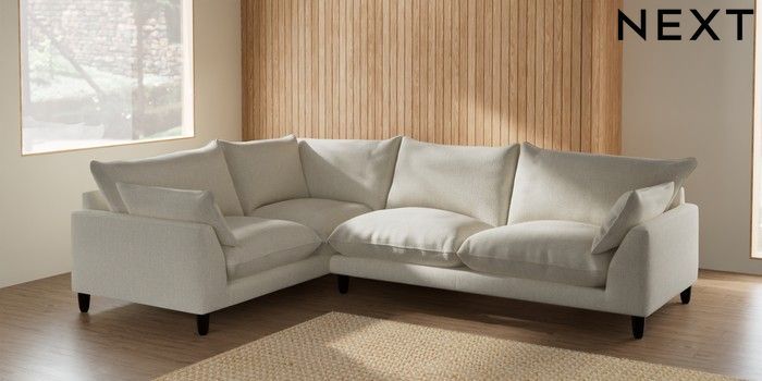 7.2.6 Buy Noa Deep Relaxed Sit Large Corner Sofa - Left Hand Chunky Texture Oyster High Leg - Dark from the Next UK online shop Click here to use our accessible website